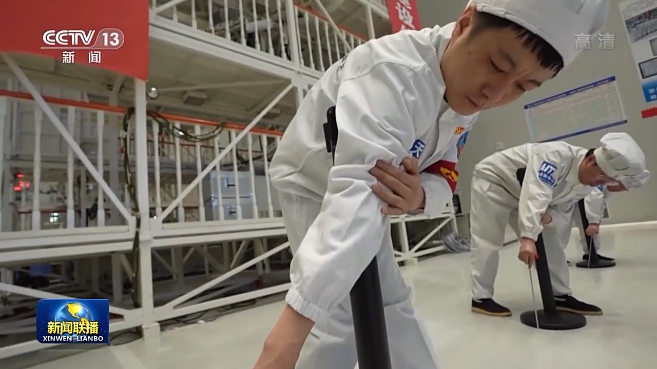 航天科技集团五院总环部神舟飞船总装班组组长 张舸:要确保设备安装平面与这个设备操作杆是一个垂直状态,也就是90度,完全90度的状态,才能够确保它能很精准地插入到孔位。